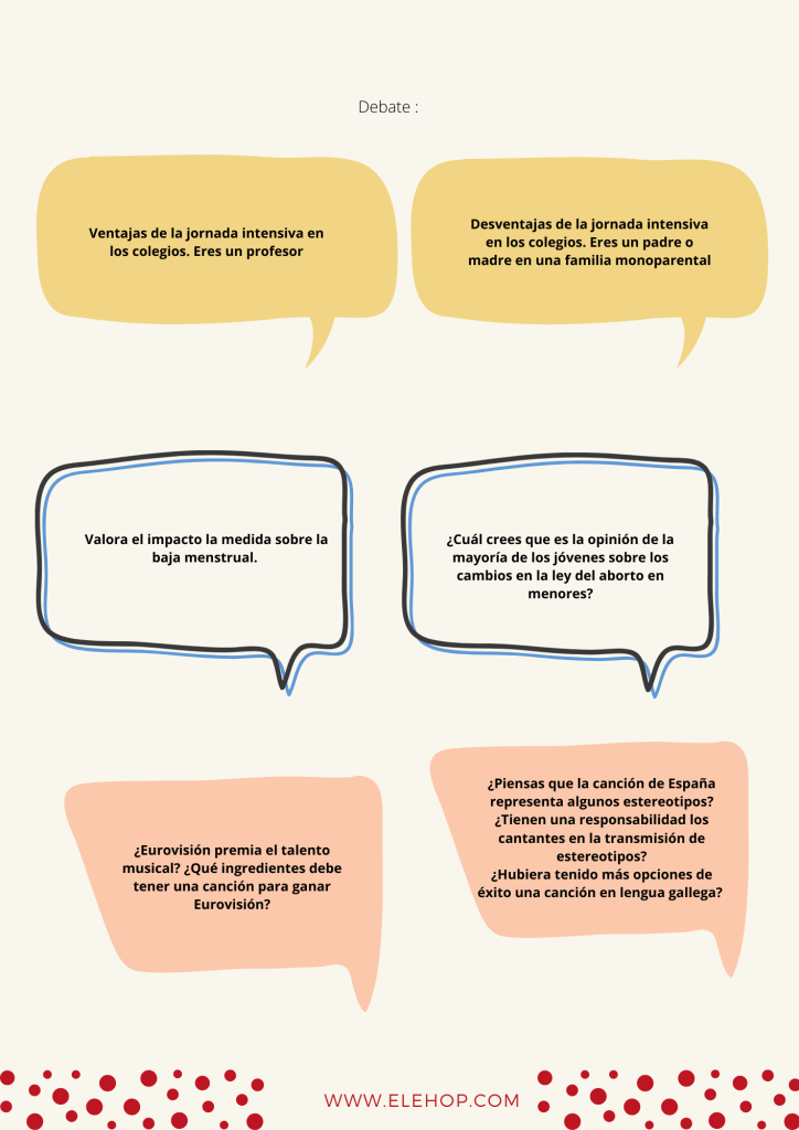 También se proponen actividades de debate tras la lectura. Los estudiantes defienden una postura, buscan ventajas o desventajas, analizan el impacto de una nueva ley…