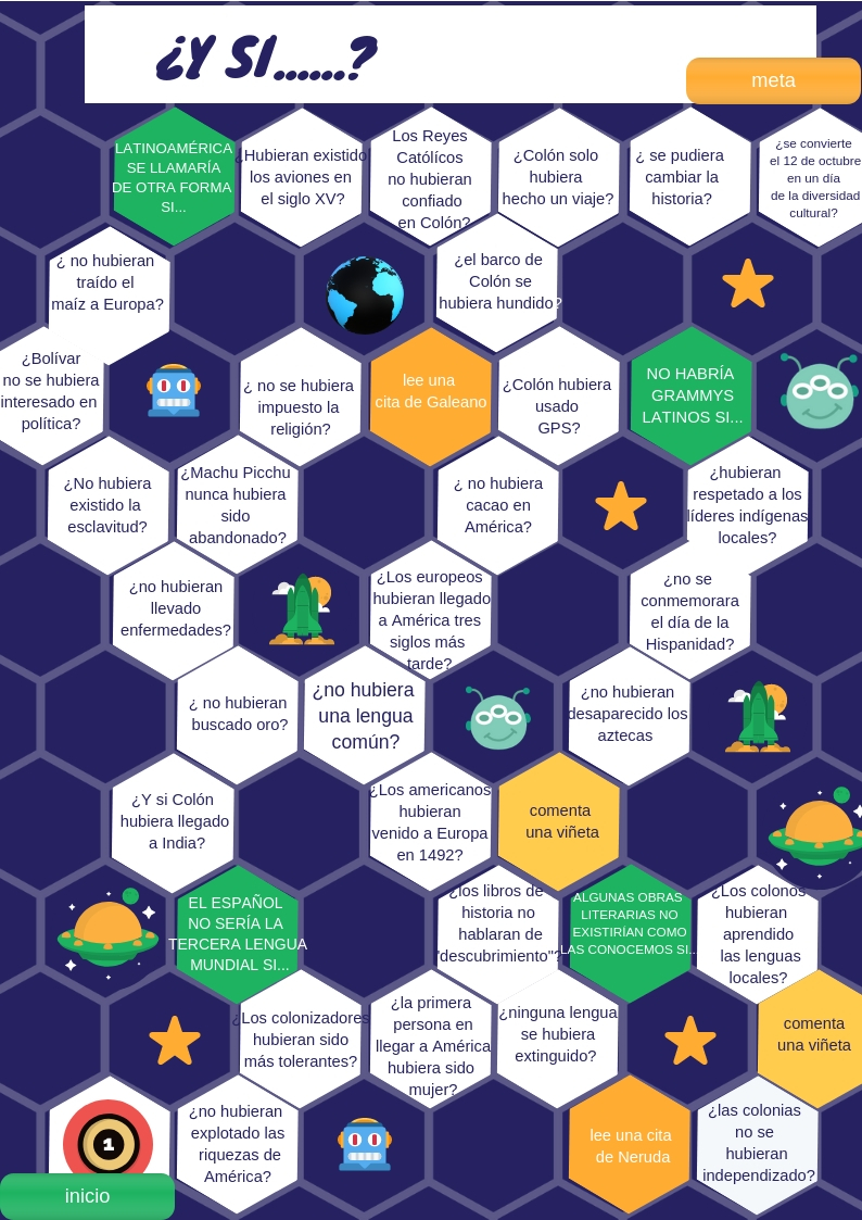 1 Next Publicado 14 noviembre, 2018 en 794 × 1123 en ¿Y si..? Cambiando la historia, un tablero para practicar condicionales y subjuntivo