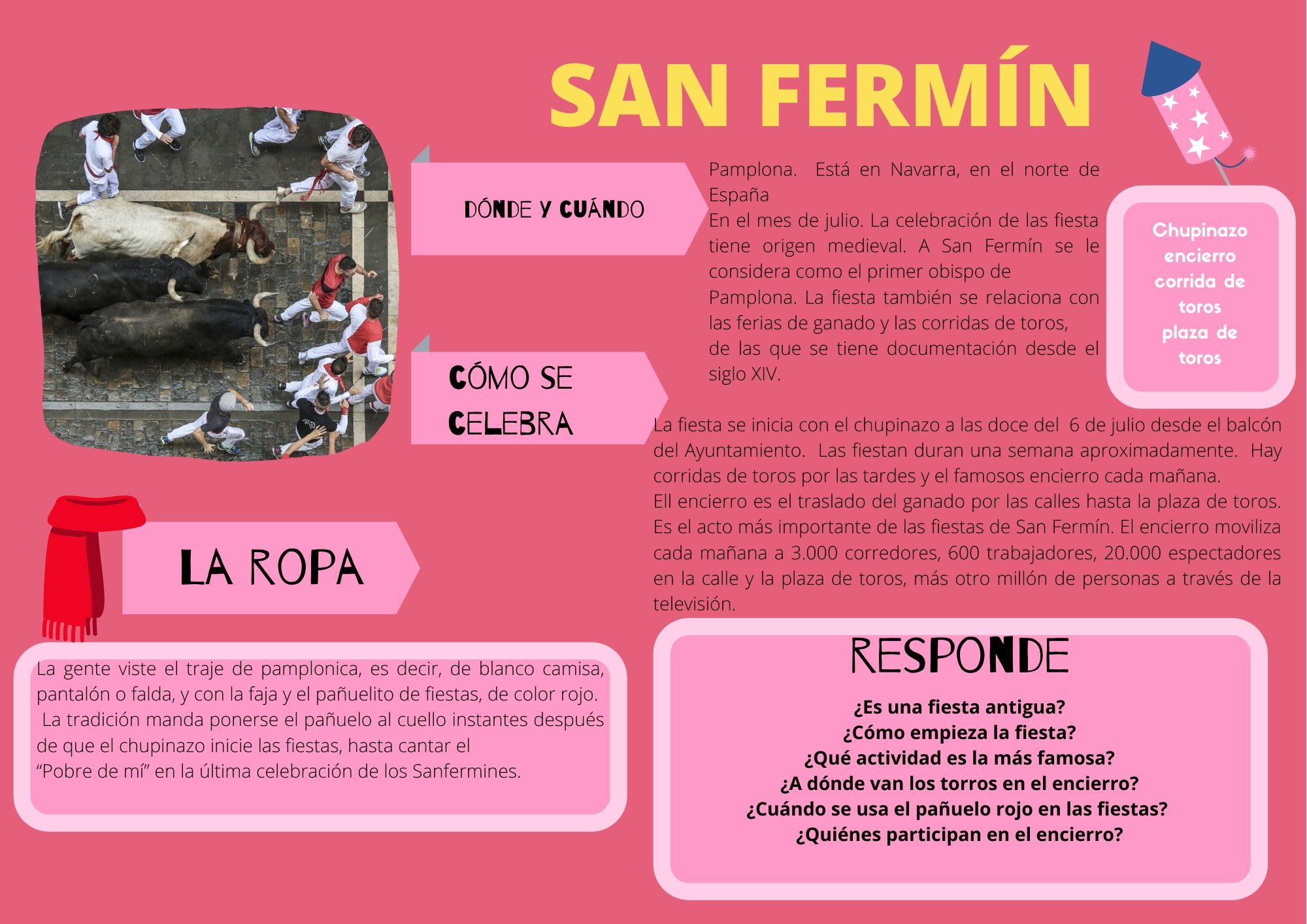 2 Previous Next Publicado 10 mayo, 2020 en 2000 × 1414 en Festivales hispanos. De la Tomatina a los Sanfermines en clase de ELE.